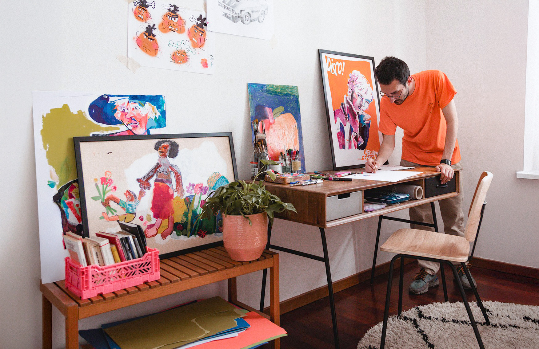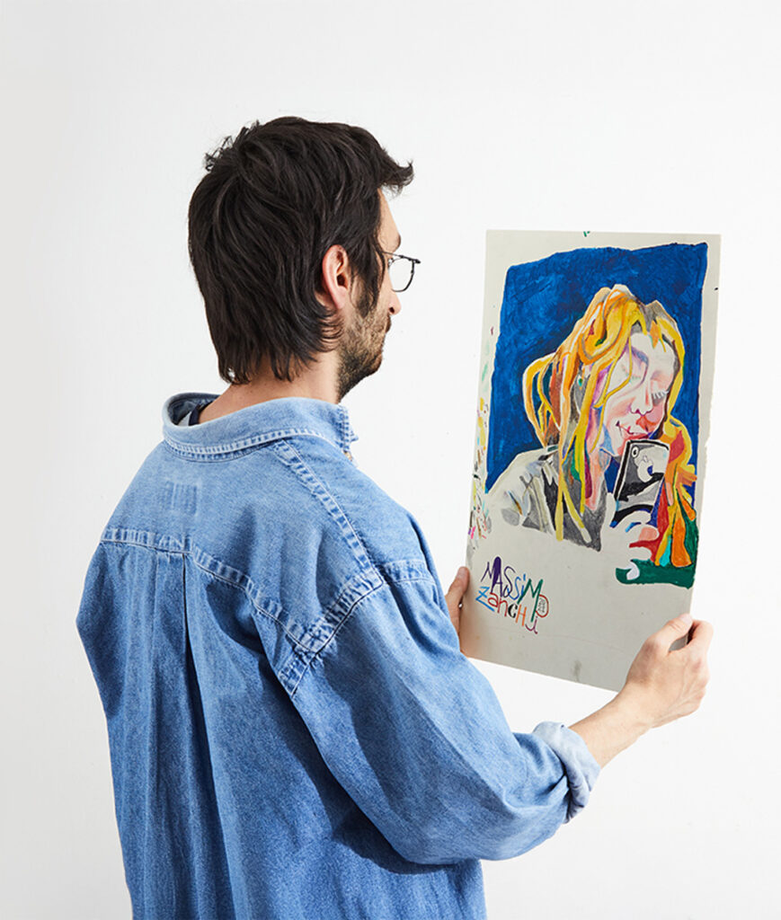 He cultivates his passion for drawing since childhood and from 2014 to 2018 he attended the Illustration course at the Superior School of Applied Arts (Super) of the Castello Sforzesco in Milan, where he has the opportunity to develop a language and a creative identity strongly linked to experimentation.