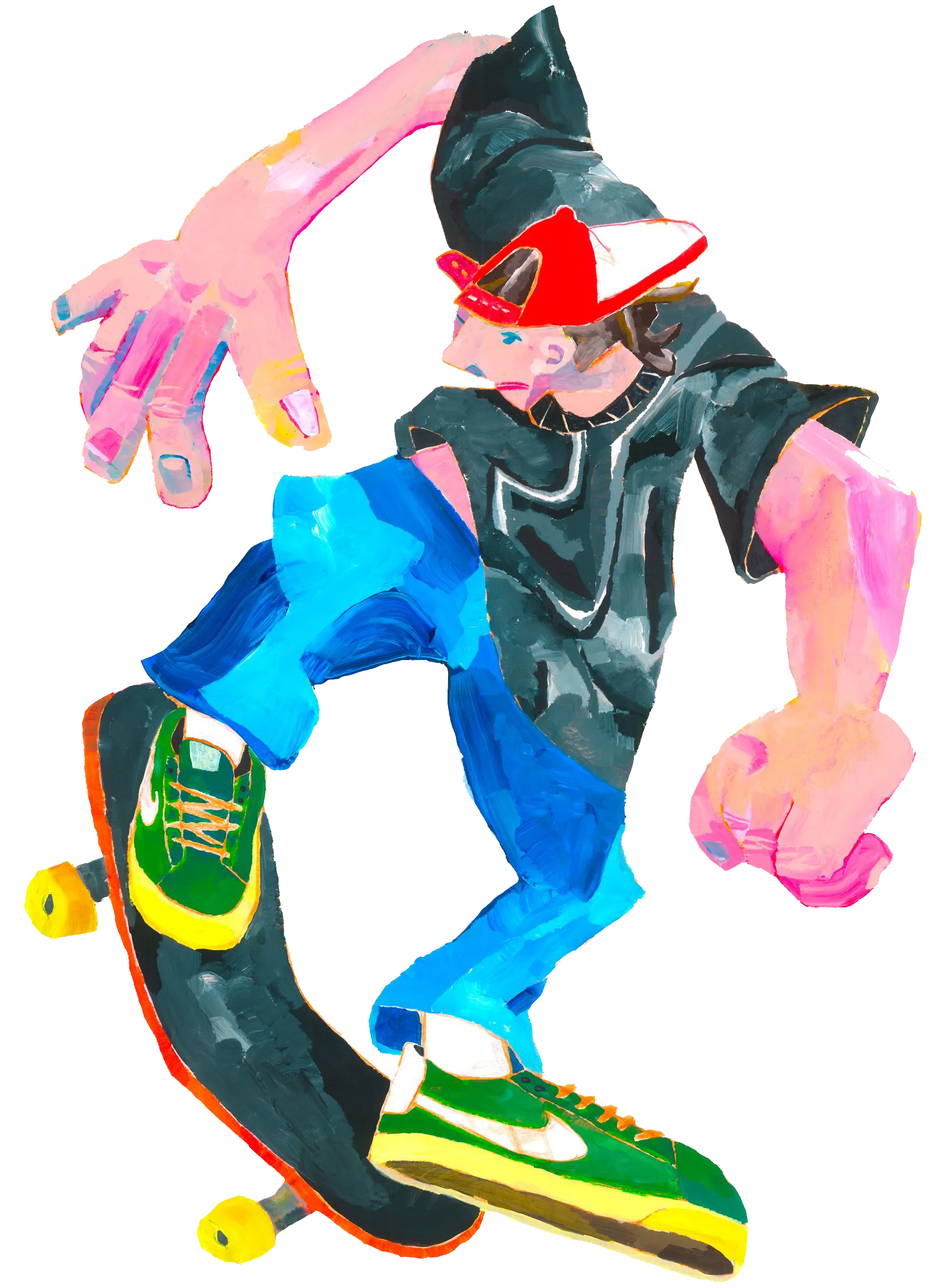 The grotesque underground of clumsy skaters launched into dangerous tricks combined with the comedy of writers with easygoing tags, coexists with fairytale atmospheres full of childish innocence.