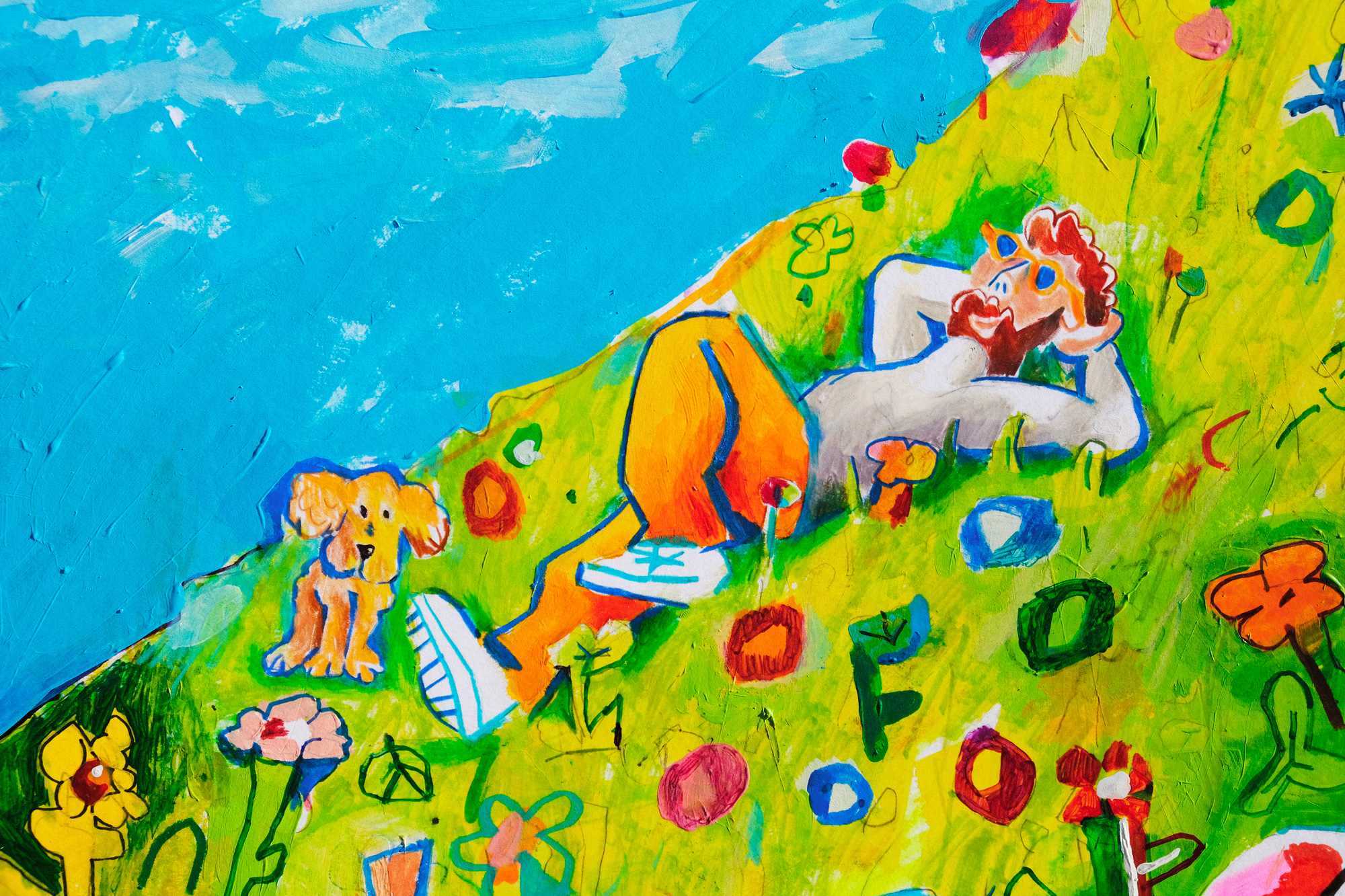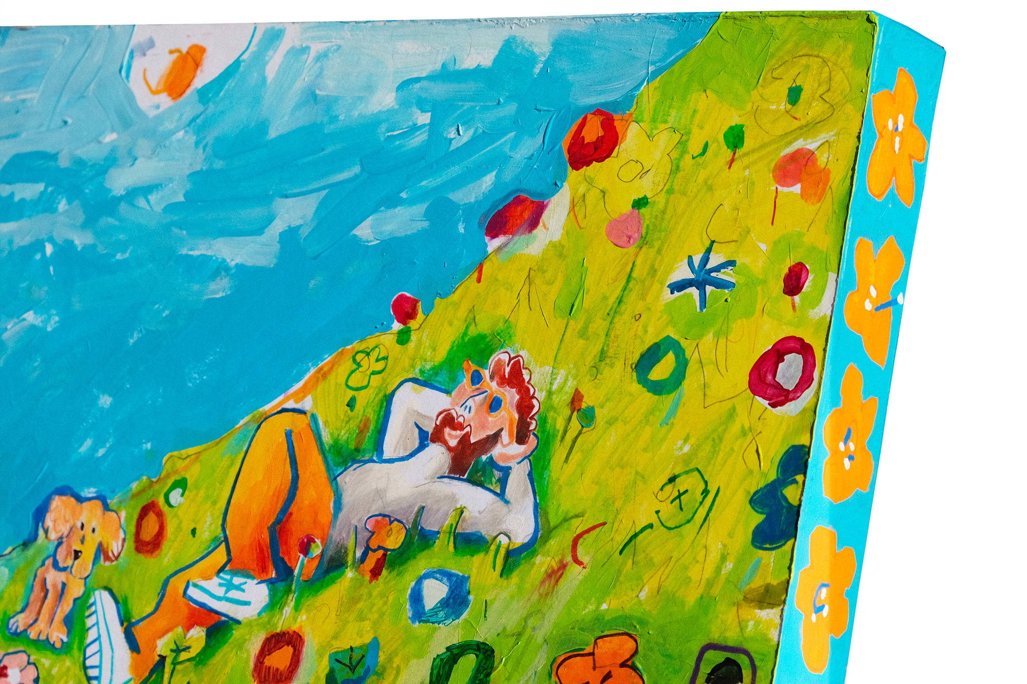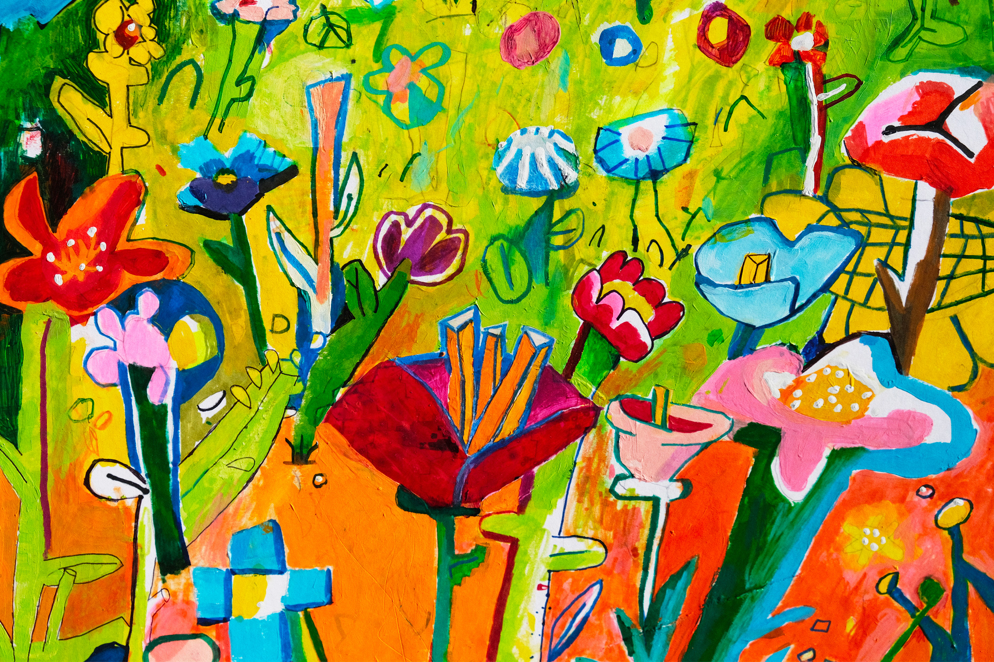 Made with mixed technique: acrylic, wall paint, markers on carton bois. One kind of artwork.