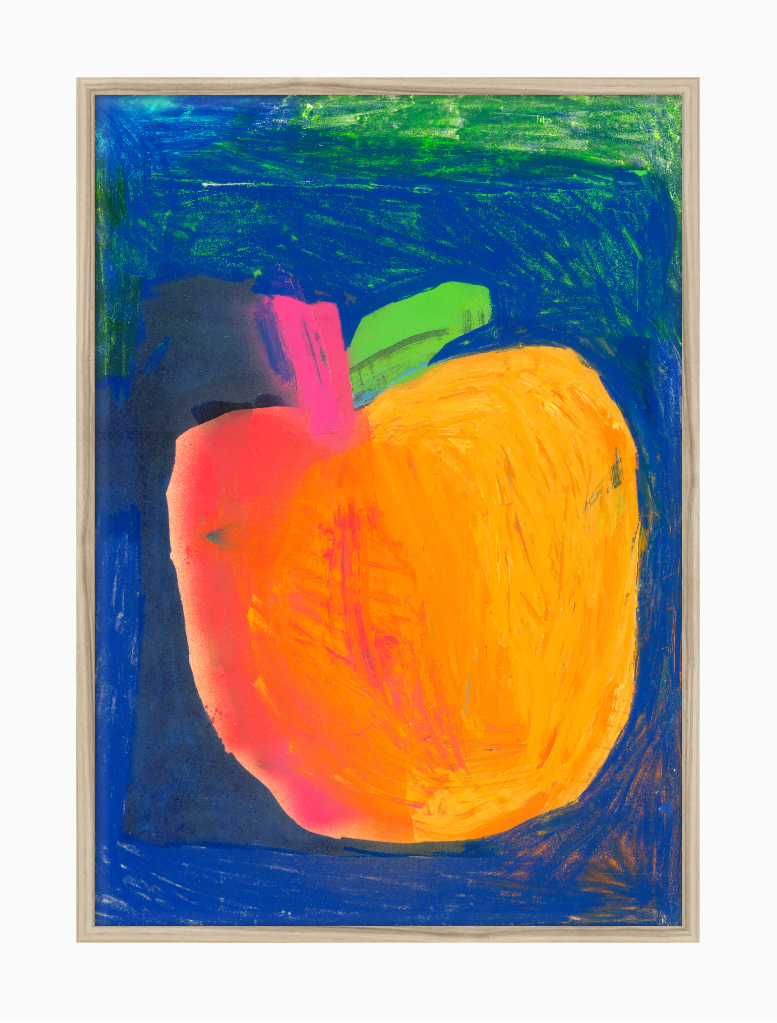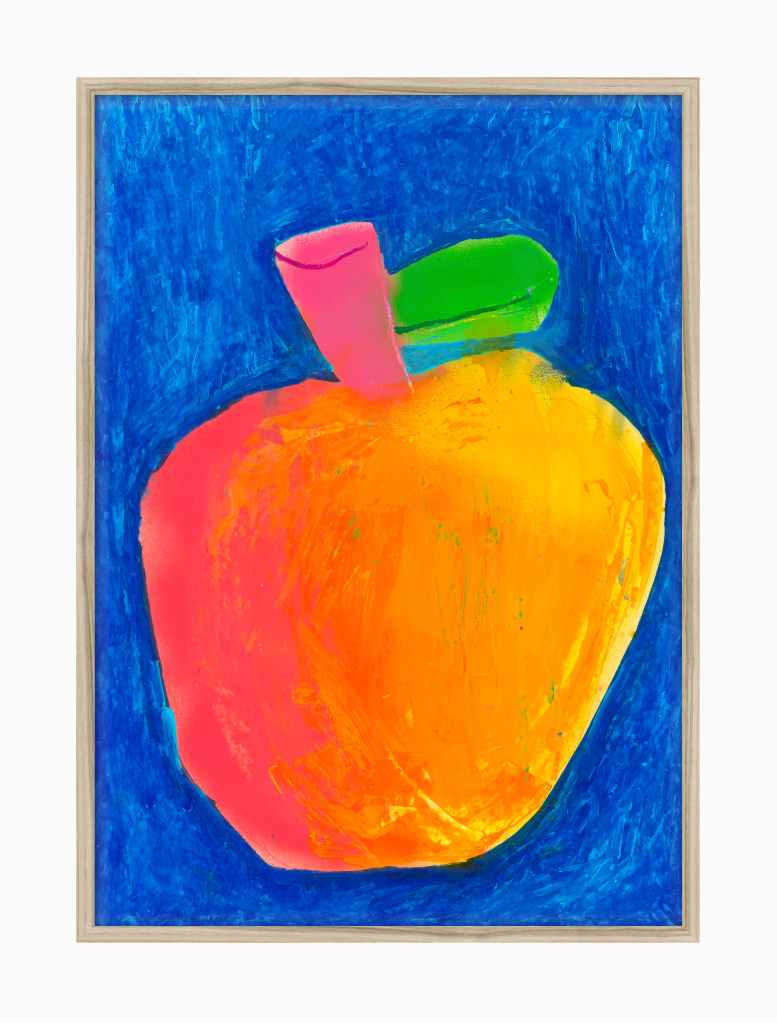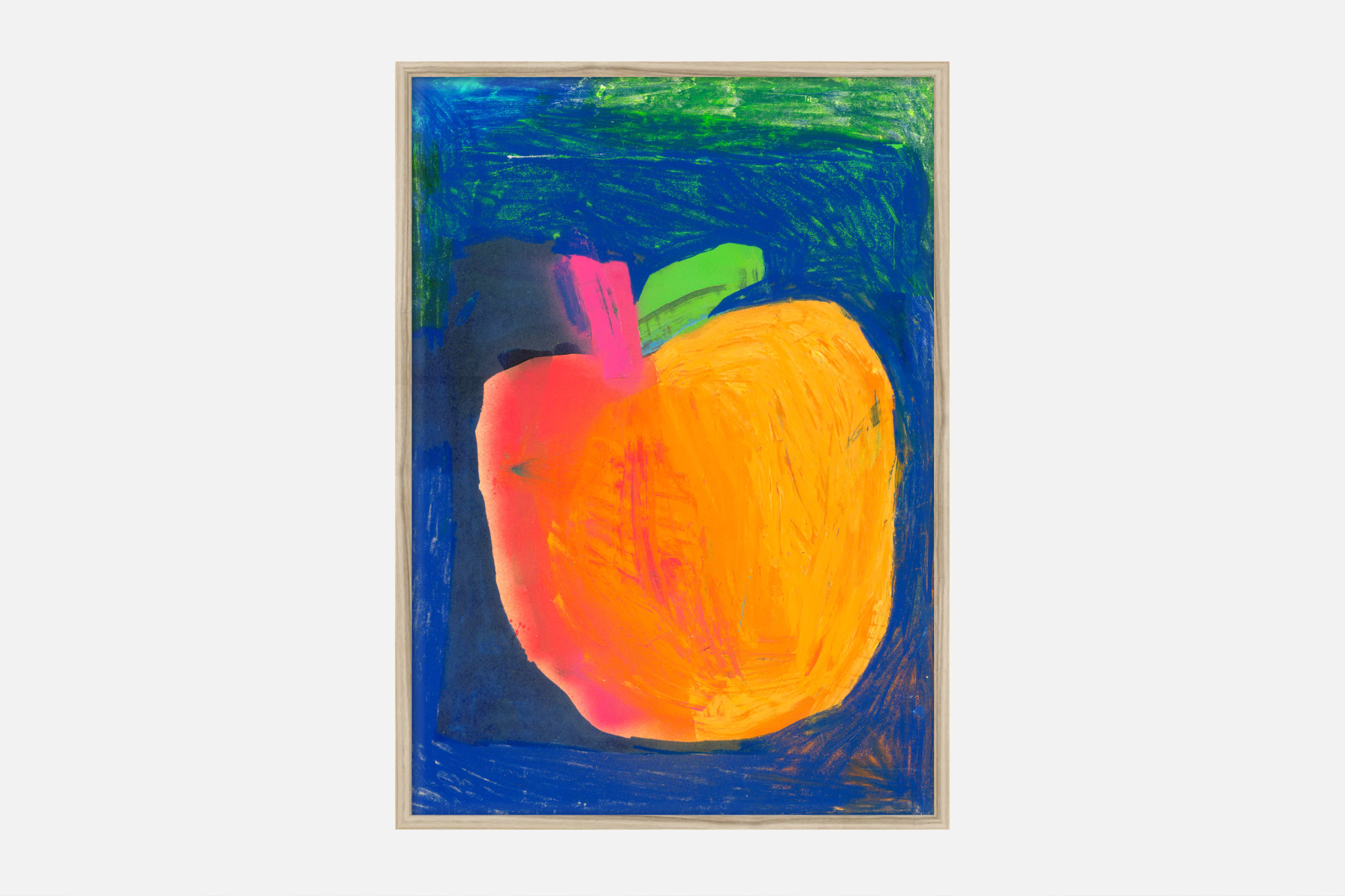 Doesn’t matter if this is a peach or an apple, dont eat it. Made with spray paint, marker and oil pastel on carton bois.