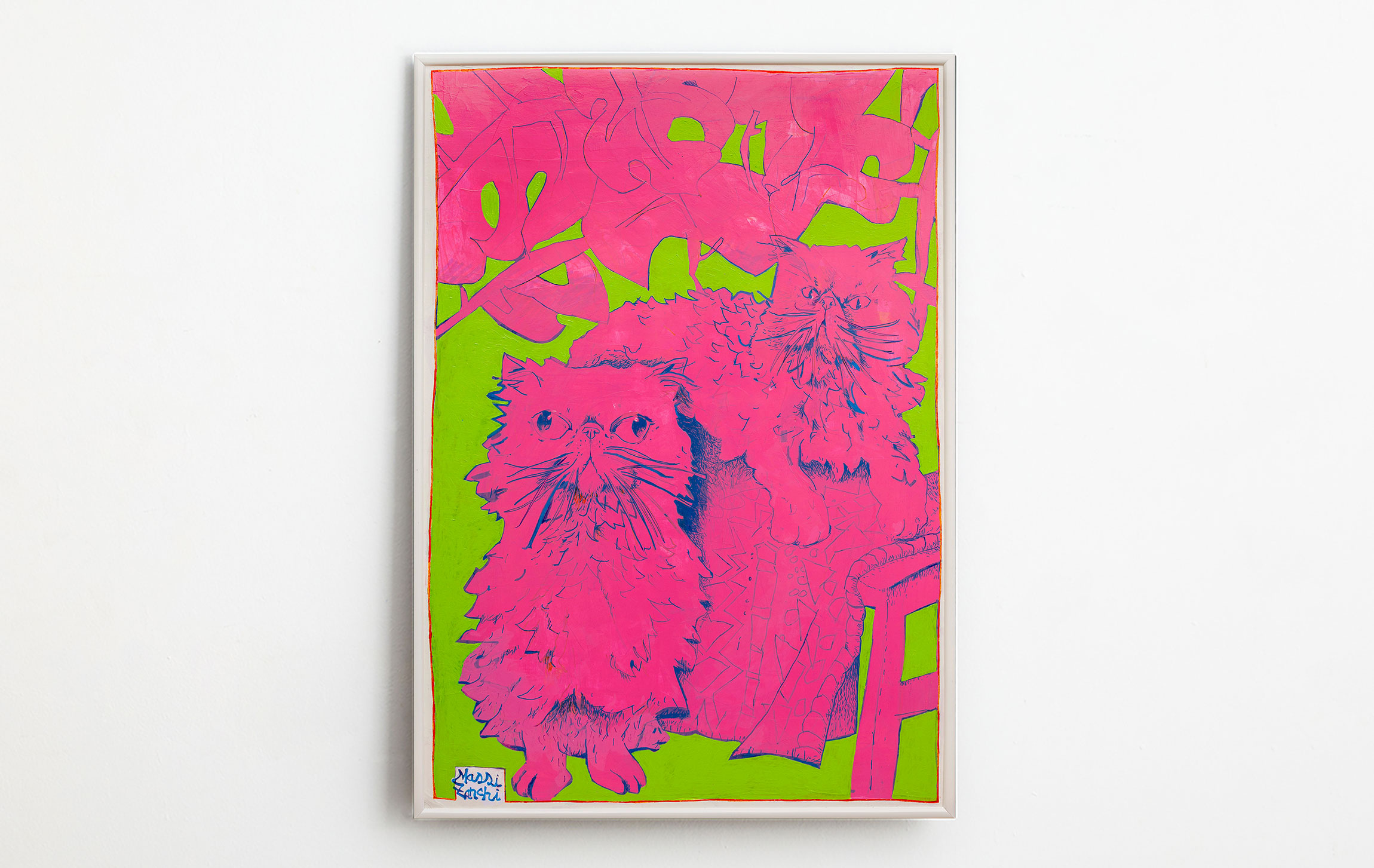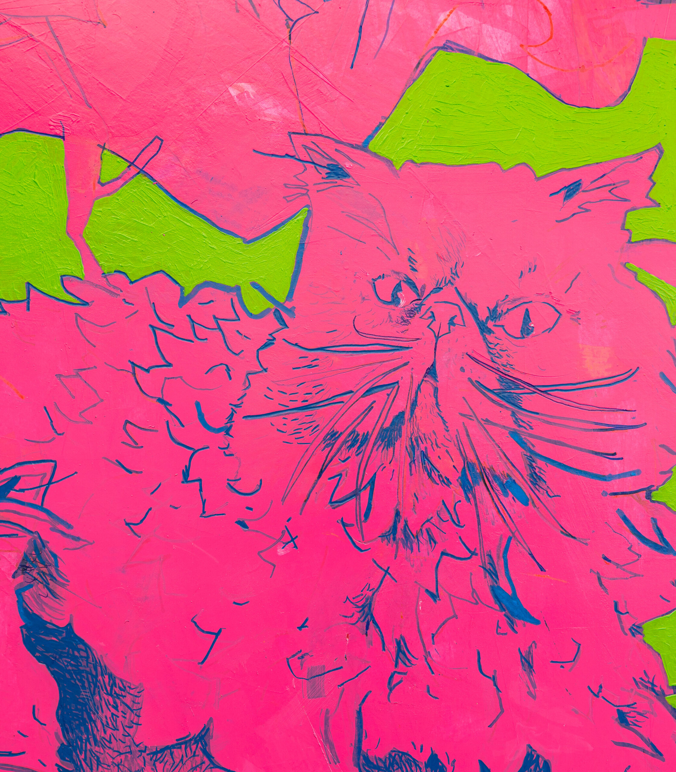 “Gatti di Gaelle e Stefano” is made with mixed technique, using a new flow of work, different brushes and pop colors.