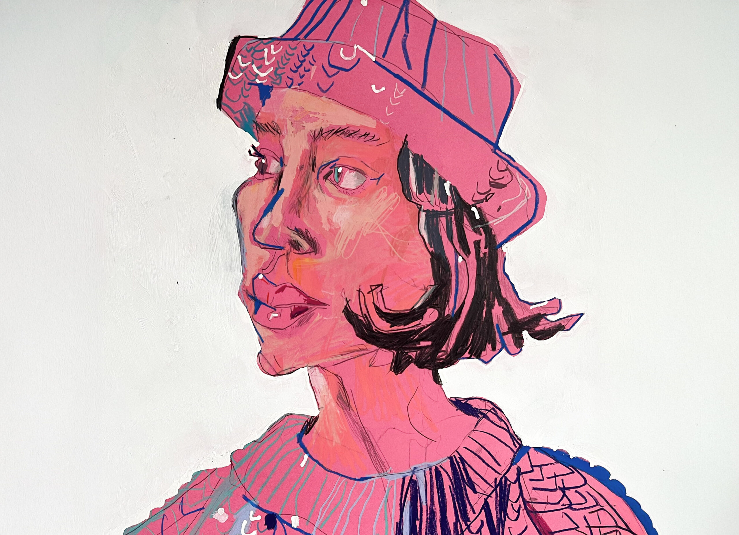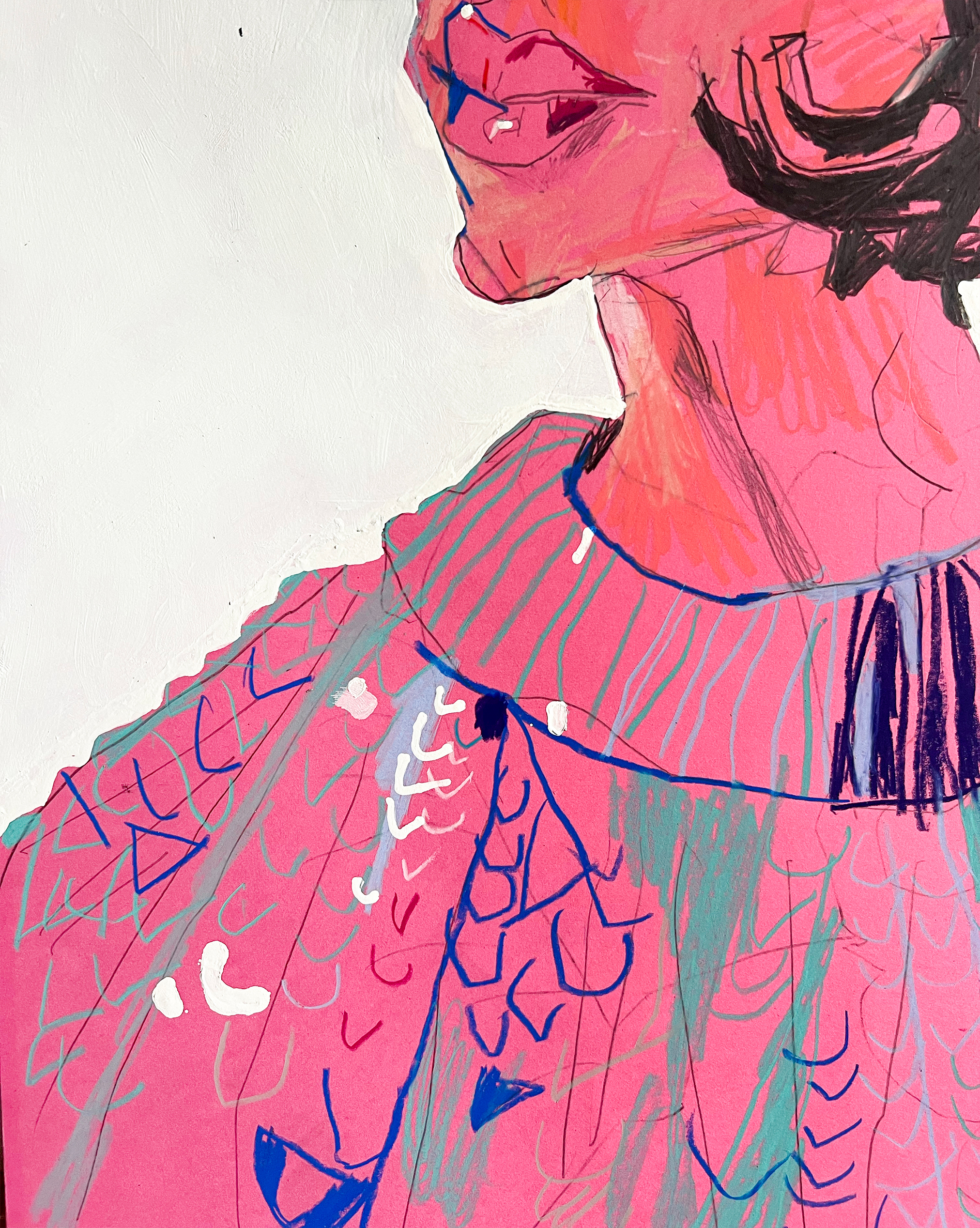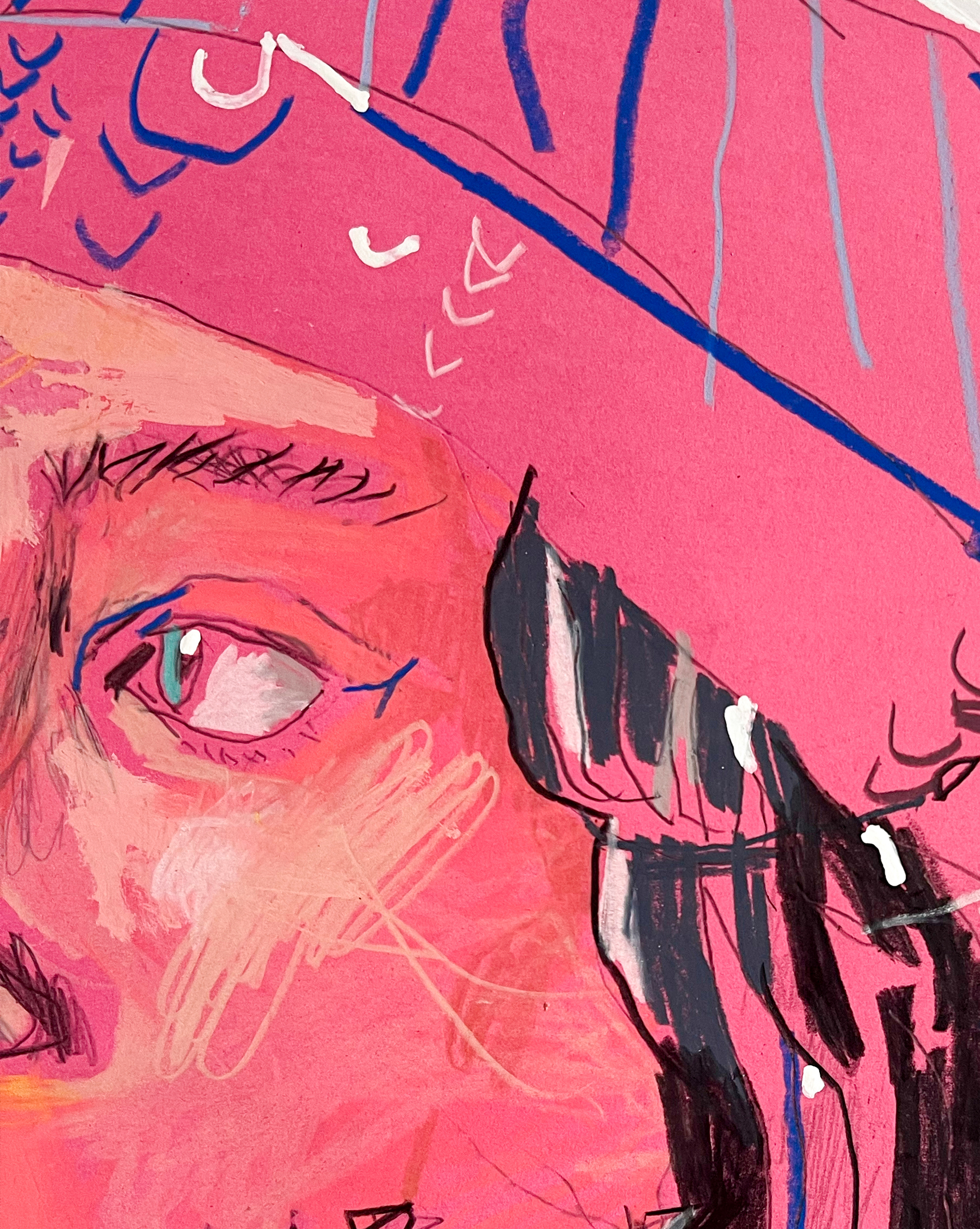 Vernice e matite su carta colorata.