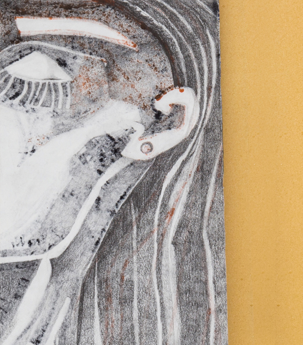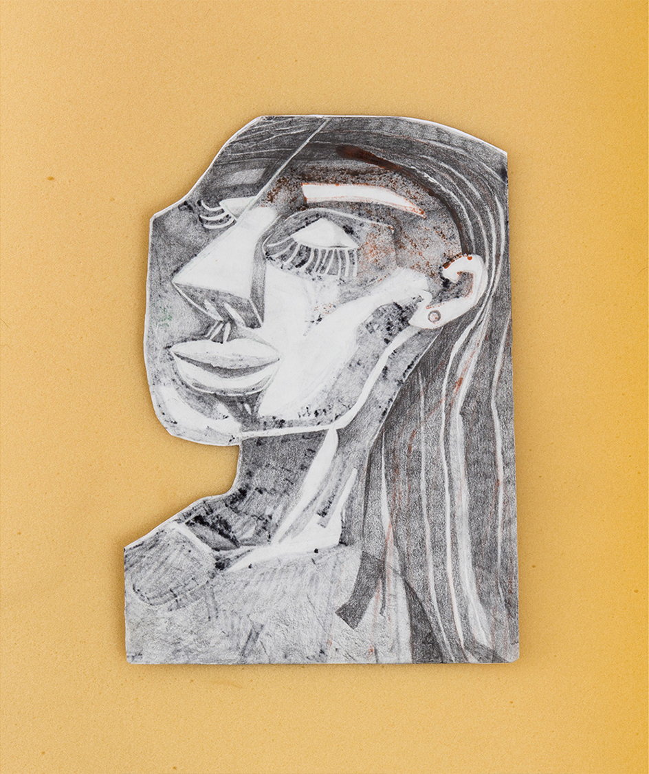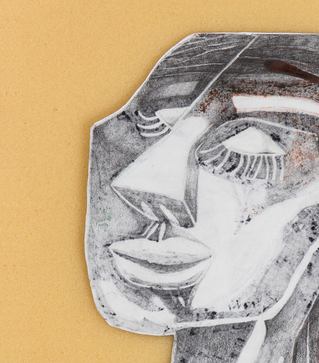 Made with pencil on my sketchbook, using light colors and graphite of different weights. This work is my interpretation of a portrait with a reference to contemporary art. One kind of artwork.