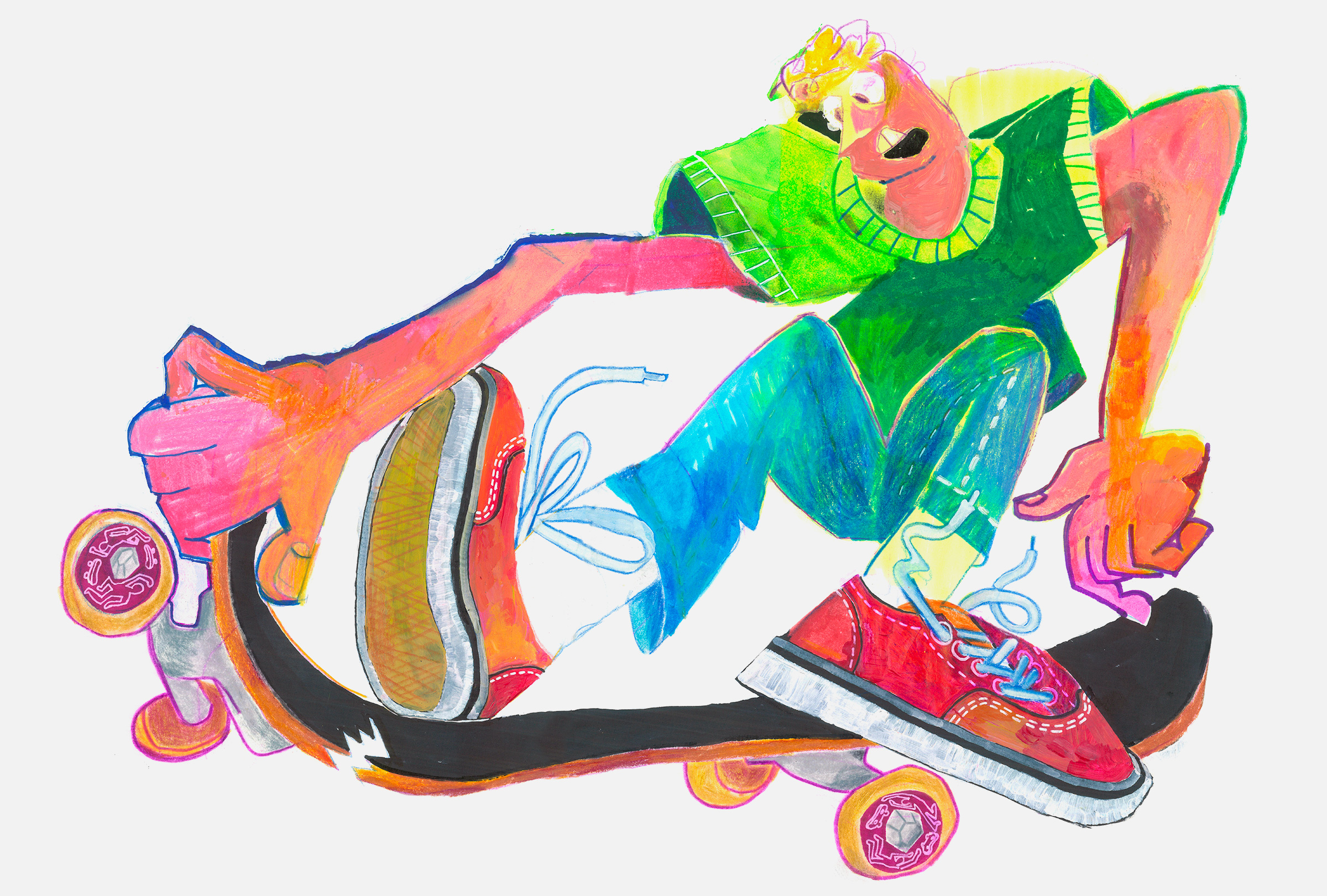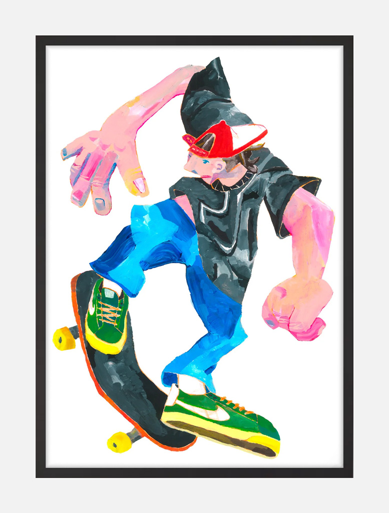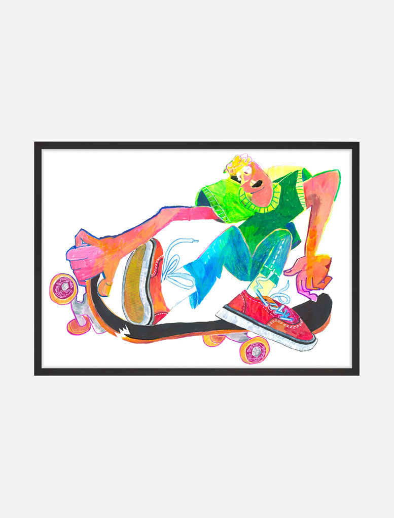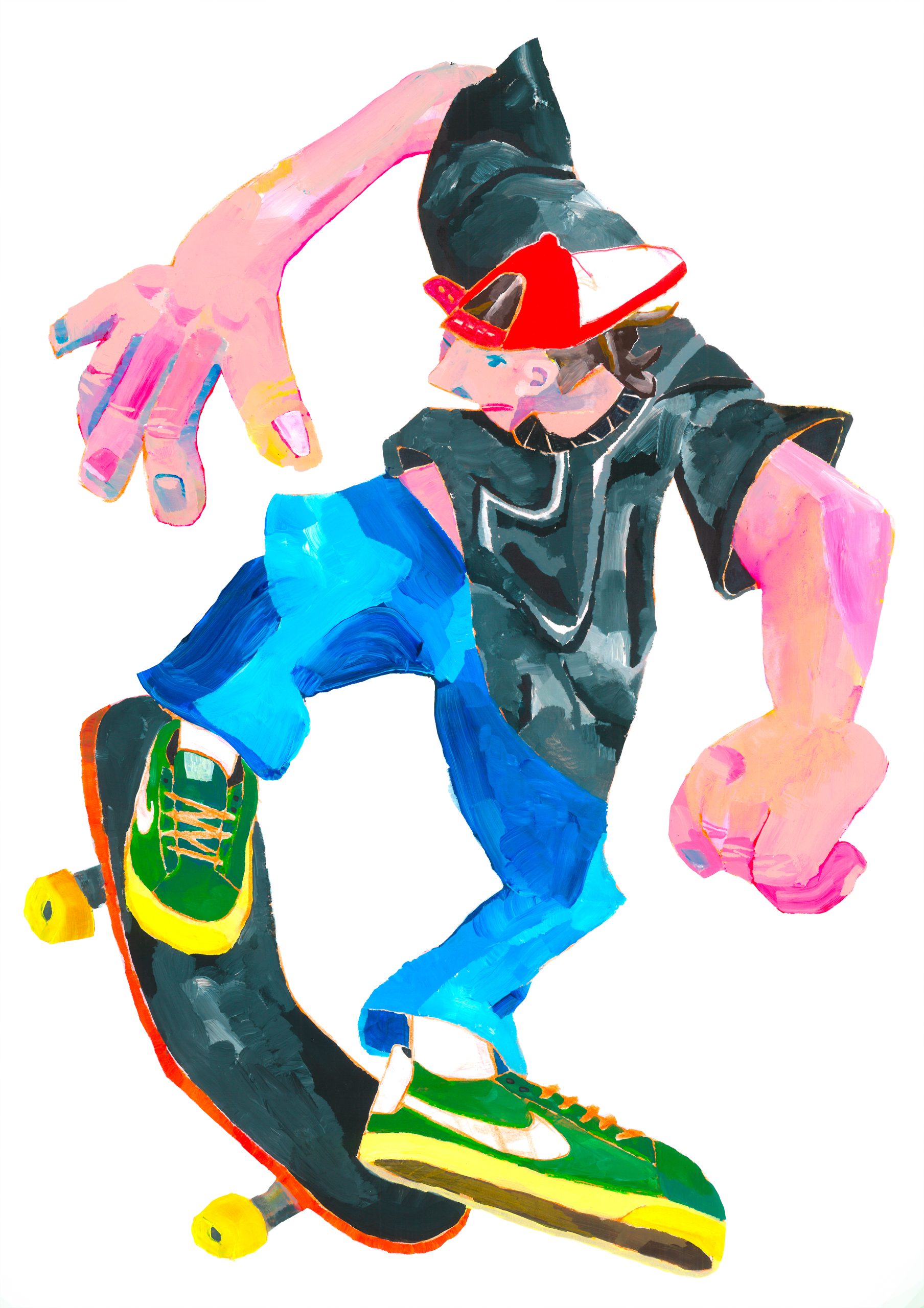 Underground skater #3 is a original paint made with acrilyc paint, pencil and marker.