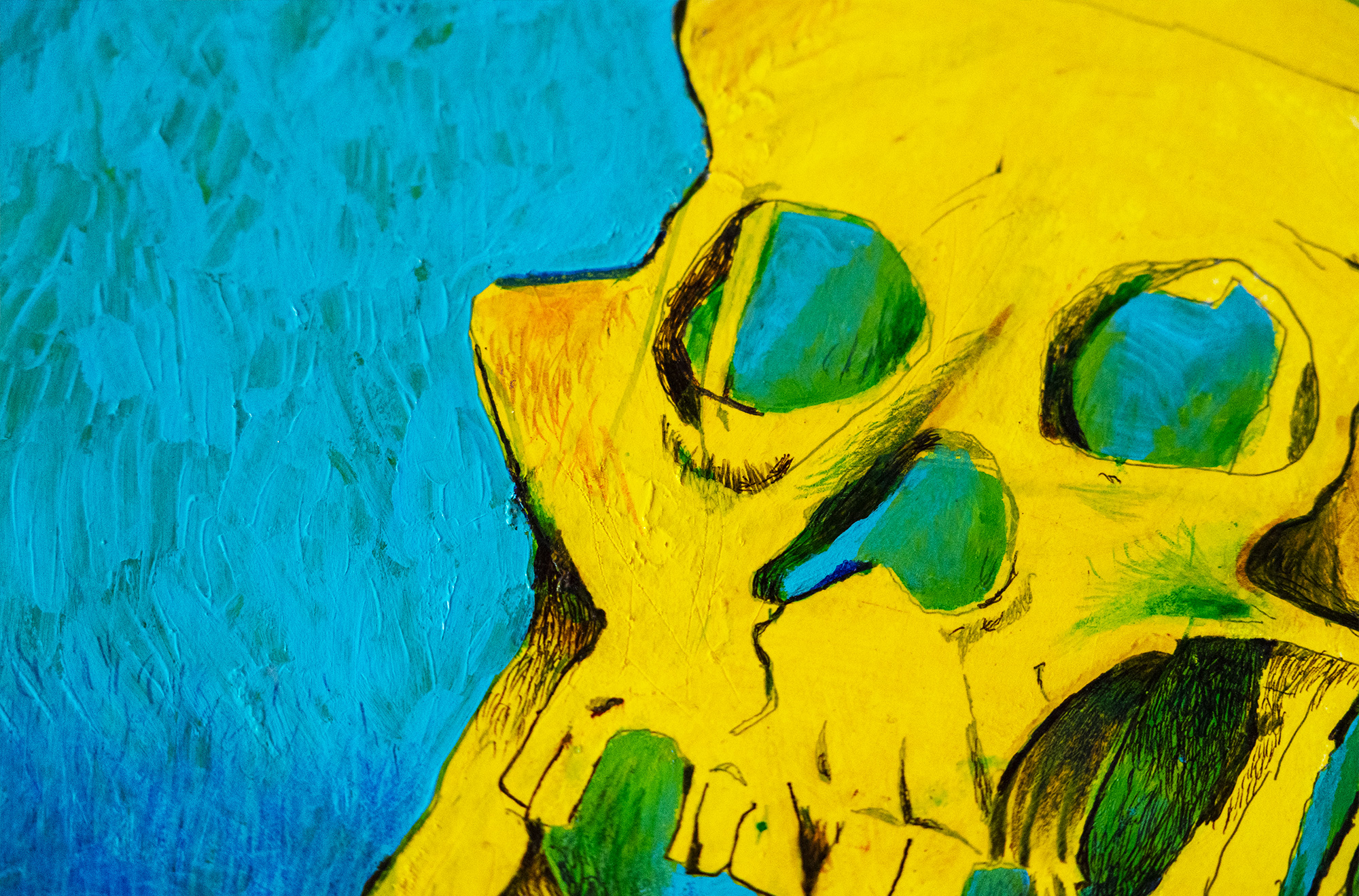 Made with mixed technique: acrylic, wall paint, markers on carton bois. One kind of artwork.